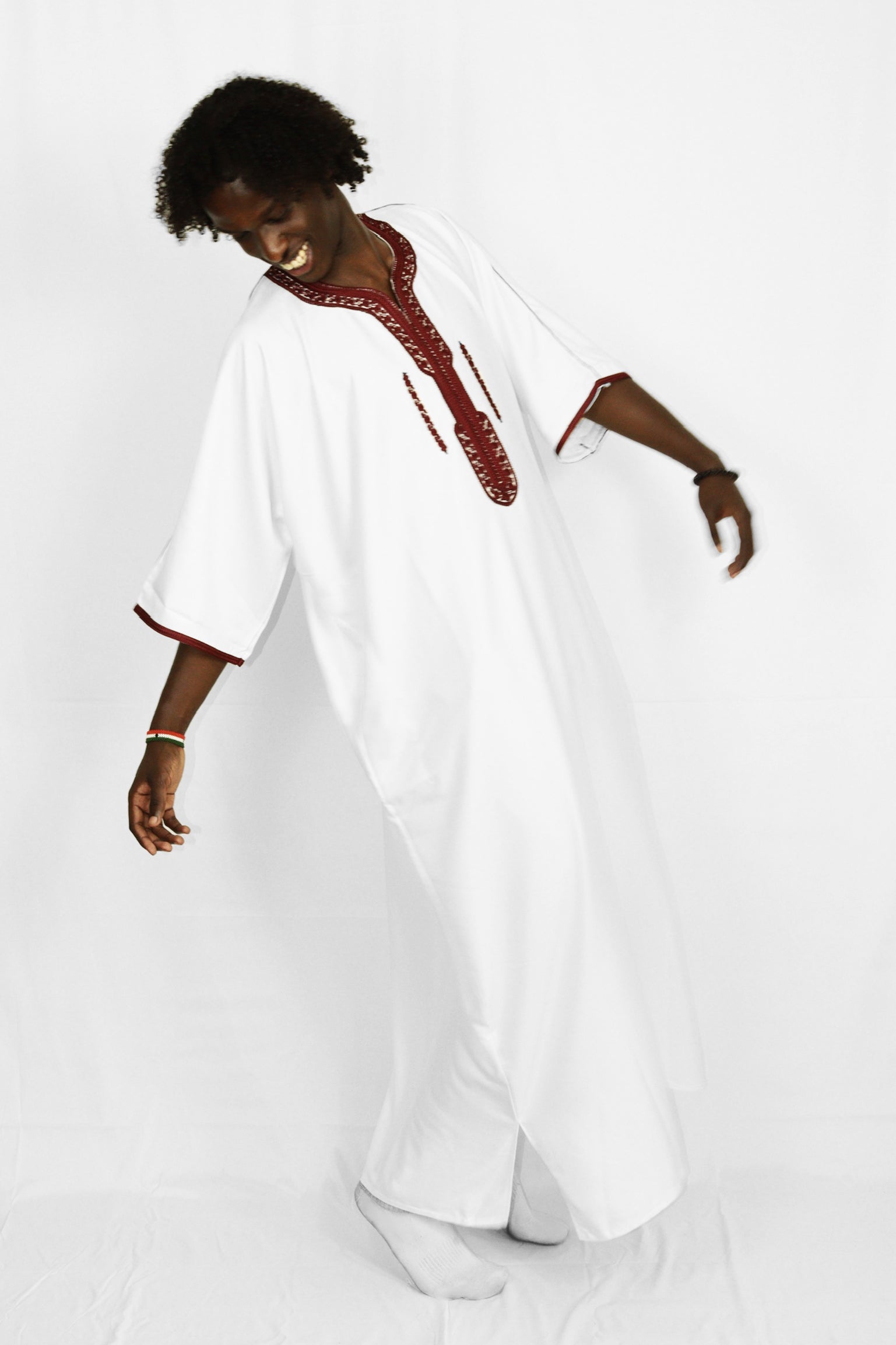 Wash inside out and use a mild detergent for the best results. We recommend you air dry your thobe.