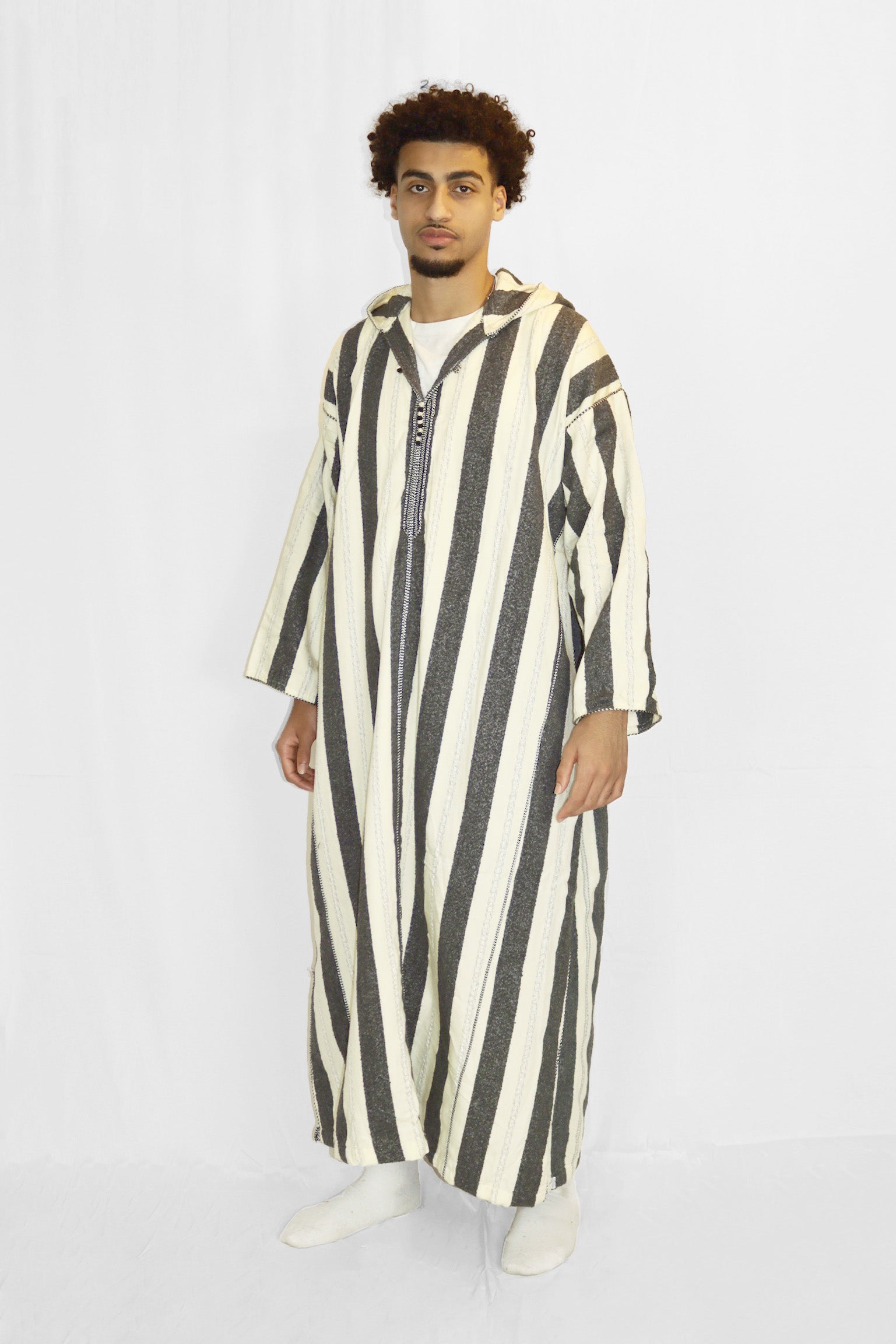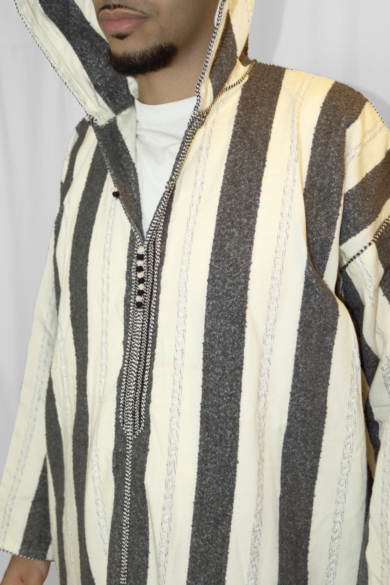 Introducing GREY STRIPES, our finely crafted thick hooded garment that exudes elegance. Impeccably stitched, this thobe is designed to provide utmost warmth and comfort. Its durability ensures long-lasting wear, while its breathability keeps you cool and relaxed.