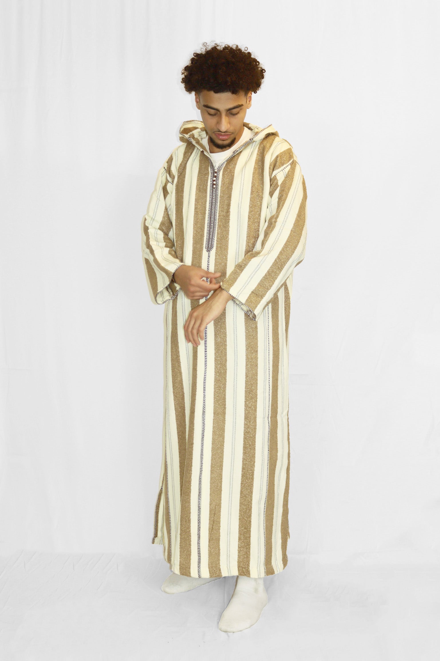 Introducing Toffee Twirl, our finely crafted thick hooded garment that exudes elegance. Impeccably stitched, this thobe is designed to provide utmost warmth and comfort. Its durability ensures long-lasting wear, while its breathability keeps you cool and relaxed.